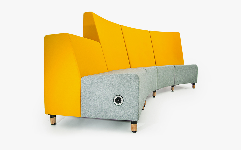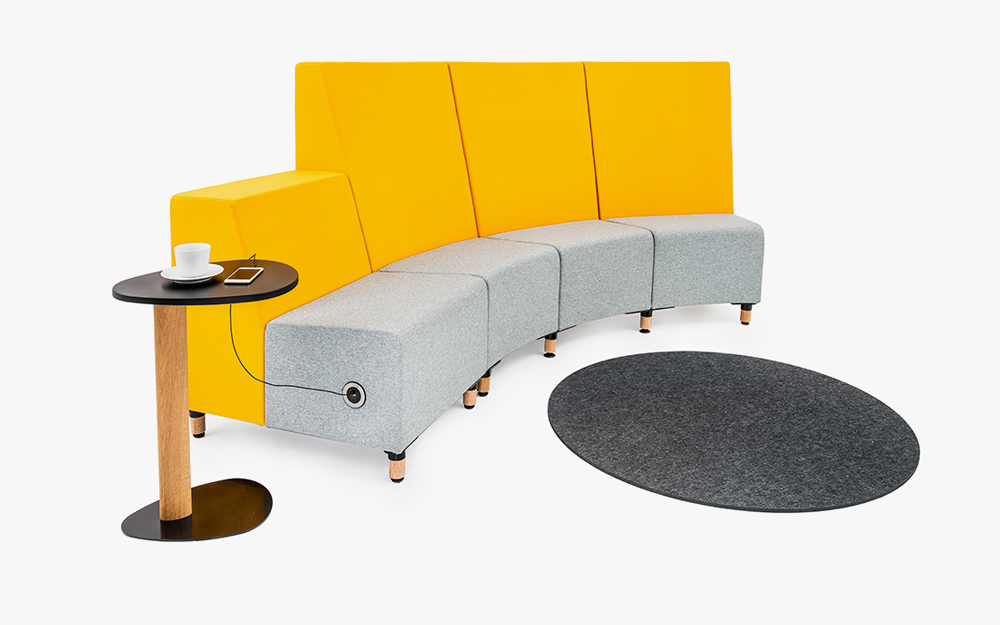 The Buttercup modular lounge system blends into a variety of settings through subtle angles that delicately contrast its robust form. A three module system which comes in straight, concave or convex shapes with high or low back options to allow for a variety of configurations. Buttercup can accommodate an integrated power and USB ports, and a mounted table along the outer back for a complete study, agile work or meeting space solution.