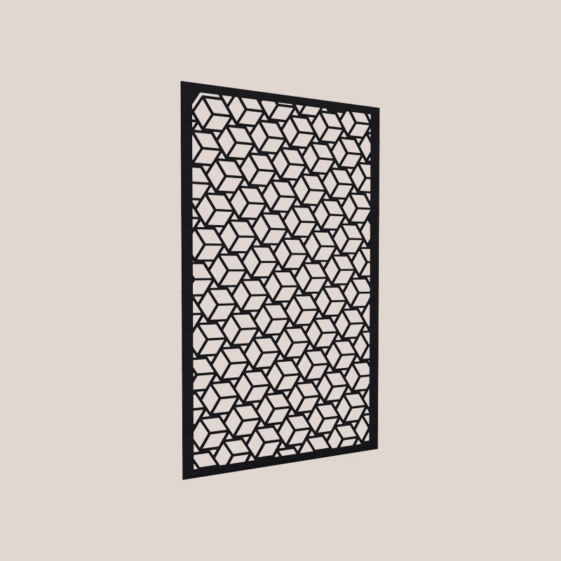 Hexagonal cutouts, meticulously designed with computational-aided design, elegantly adorn this sound-absorbing screen. Use it to divide large spaces into smaller areas, enhancing both visual and acoustic privacy.