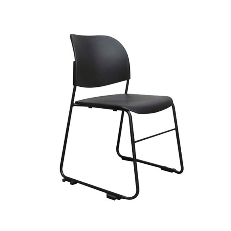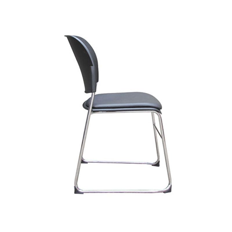 - Black plastic with seat padded in Black PU, chrome sled frame