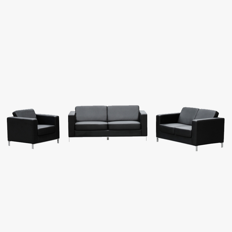 Professional single, double or three seater, modern square finished leather wrapped lounge