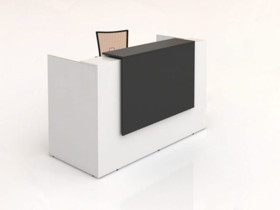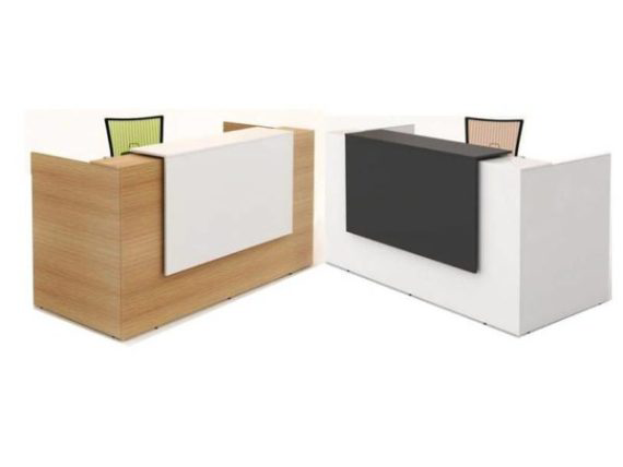 Modern simple designed reception counter finished in Beech Melamine front and side panels with White feature hob. Matt White Melamine desktop.